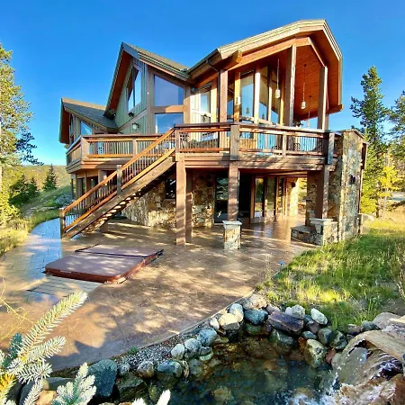 The 6-bedroom Four Master Suites, Views!! Hot Tub, Private Ski Shuttle, Sprawling Entertaining Areas!! is located at a distance of 7 km from Sapphire Point Overlook Observation Deck and provides hiking, horse riding, and bowling for active guests. Featuring a Jacuzzi, the villa is within 10 minutes' drive of Breckenridge Recreation Center.